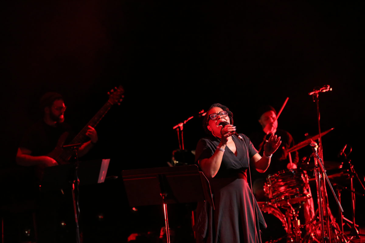 Dans ce concert, il y a une chanteuse et des musiciens et musiciennes.